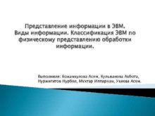 Представление информации в ЭВМ Виды информации Классификация ЭВМ