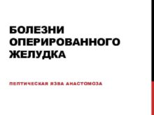 БОЛЕЗНИ ОПЕРИРОВАННОГО ЖЕЛУДКА ПЕПТИЧЕСКАЯ ЯЗВА АНАСТОМОЗА КЛАССИФИКАЦИЯ