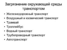 Загрязнение окружающей среды транспортом Железнодорожный транспорт