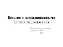 Болезни с нетрадиционными типами наследования Презентацию подготовила Данила