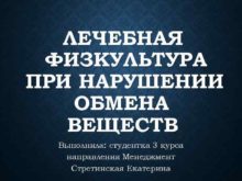 ЛЕЧЕБНАЯ ФИЗКУЛЬТУРА ПРИ НАРУШЕНИИ ОБМЕНА ВЕЩЕСТВ Выполнила студентка