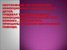 НЕОТЛОЖНЫЕ СОСТОЯНИЯ ПРИ ИНФЕКЦИОННЫХ ЗАБОЛЕВАНИЯХ У ДЕТЕЙ ПИЩЕВАЯ