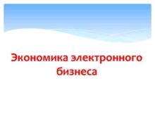 Экономика электронного бизнеса Особенности предпринимательской деятельности в