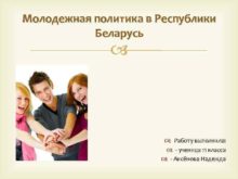 Молодежная политика в Республики Беларусь Работу выполнила —