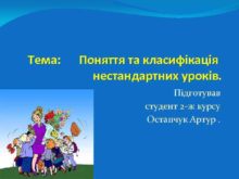Тема Поняття та класифікація нестандартних уроків Підготував студент