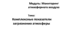 Модуль Мониторинг атмосферного воздуха Тема Комплексные показатели загрязнения