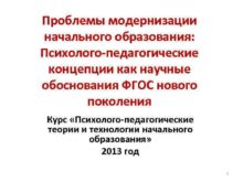 Проблемы модернизации начального образования Психолого-педагогические концепции как научные