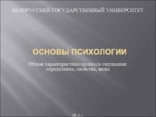 БЕЛОРУССКИЙ ГОСУДАРСТВЕННЫЙ УНИВЕРСИТЕТ ОСНОВЫ ПСИХОЛОГИИ Общая характеристика процесса