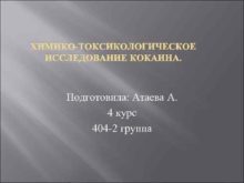 ХИМИКО-ТОКСИКОЛОГИЧЕСКОЕ ИССЛЕДОВАНИЕ КОКАИНА Подготовила Атаева А 4 курс