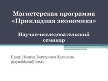 Магистерская программа Прикладная экономика Научно-исследовательский семинар Проф Полина