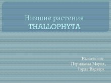 Низшие растения THALLOPHYTA Выполнили Пермякова Мария Таран Варвара