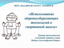 МОУ ДОД ДЮСШ ЗАТО Г ЗАОЗЁРСК Использование здоровьесберегающих