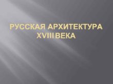 РУССКАЯ АРХИТЕКТУРА XVIII ВЕКА Направления Русская архитектура