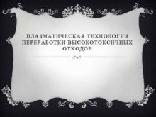 ПЛАЗМАТИЧЕСКАЯ ТЕХНОЛОГИЯ ПЕРЕРАБОТКИ ВЫСОКОТОКСИЧНЫХ ОТХОДОВ ПЛАЗМЕННЫЙ СПОСОБ