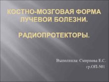 КОСТНО-МОЗГОВАЯ ФОРМА ЛУЧЕВОЙ БОЛЕЗНИ РАДИОПРОТЕКТОРЫ Выполнила Смирнова Е