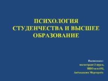 ПСИХОЛОГИЯ СТУДЕНЧЕСТВА И ВЫСШЕЕ ОБРАЗОВАНИЕ Выполнила магистрант 2