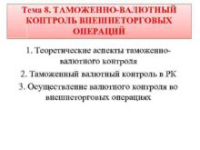 Тема 8 ТАМОЖЕННО-ВАЛЮТНЫЙ КОНТРОЛЬ ВНЕШНЕТОРГОВЫХ ОПЕРАЦИЙ 1 Теоретические