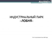 Aksi S Co ИНДУСТРИАЛЬНЫЙ ПАРК ЛОБНЯ Отчет по состоянию