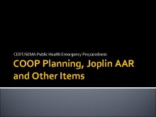 CERT SEMA Public Health Emergency Preparedness COOP Planning Joplin