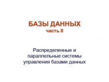 БАЗЫ ДАННЫХ часть II Распределенные и параллельные системы