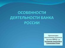 ОСОБЕННОСТИ ДЕЯТЕЛЬНОСТИ БАНКА РОССИИ Презентацию подготовили студентки группы
