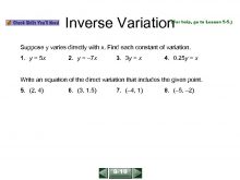 ALGEBRA 1 LESSON 8 -10 Inverse Variation For