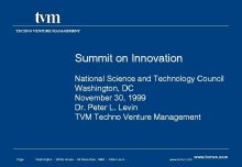 TECHNO VENTURE MANAGEMENT Summit on Innovation National Science