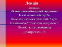 Лекція дисципліна Основи технології продукції харчування Тема Технологія