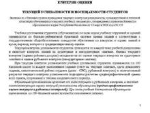 КРИТЕРИИ ОЦЕНКИ ТЕКУЩЕЙ УСПЕВАЕМОСТИ И ПОСЕЩАЕМОСТИ СТУДЕНТОВ Выписка