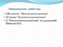 Пайдаланылған әдебиеттер 1 Ж Ахметов Патологиялық анатомия 2 Струков Патологическая