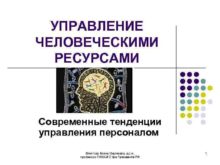 УПРАВЛЕНИЕ ЧЕЛОВЕЧЕСКИМИ РЕСУРСАМИ Современные тенденции управления персоналом Яхонтова