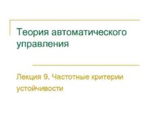 Теория автоматического управления Лекция 9 Частотные критерии устойчивости