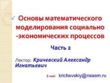 Основы математического моделирования социально -экономических процессов Часть 2