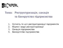 Тема Реструктуризація санація та банкрутство підприємства 1 2