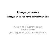 Традиционные педагогические технологии Лекция по Педагогическим технологиям Доц
