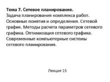 Тема 7 Сетевое планирование Задача планирования комплекса работ