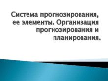 Система прогнозирования ее элементы Организация прогнозирования и планирования