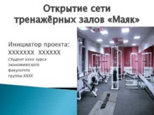 Открытие сети тренажёрных залов Маяк Инициатор проекта ХХХХХХХ