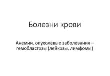 Болезни крови Анемии опухолевые заболевания гемобластозы лейкозы