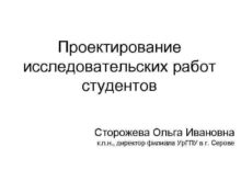 Проектирование исследовательских работ студентов Сторожева Ольга Ивановна к
