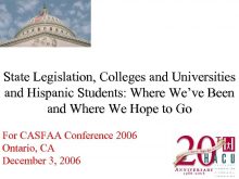State Legislation Colleges and Universities and Hispanic Students