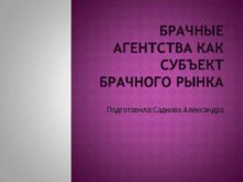 БРАЧНЫЕ АГЕНТСТВА КАК СУБЪЕКТ БРАЧНОГО РЫНКА Подготовила Садкова