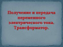 Получение и передача переменного электрического тока Трансформатор