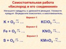 Самостоятельная работа Кислород и его соединения Напишите продукты