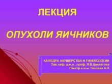 ЛЕКЦИЯ ОПУХОЛИ ЯИЧНИКОВ КАФЕДРА АКУШЕРСТВА И ГИНЕКОЛОГИИ Зав