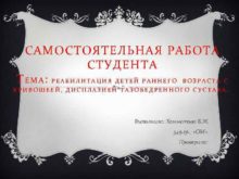 САМОСТОЯТЕЛЬНАЯ РАБОТА СТУДЕНТА ТЕМА РЕАБИЛИТАЦИЯ ДЕТЕЙ РАННЕГО ВОЗРАСТА
