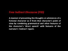 Free Indirect Discourse FID A manner of presenting