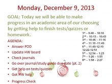 Monday December 9 2013 GOAL Today we will