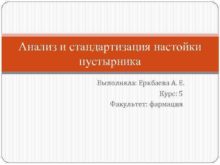 Анализ и стандартизация настойки пустырника Выполняла Еркбаева А