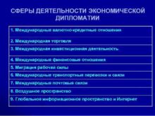 СФЕРЫ ДЕЯТЕЛЬНОСТИ ЭКОНОМИЧЕСКОЙ ДИПЛОМАТИИ 1 Международные валютно-кредитные отношения